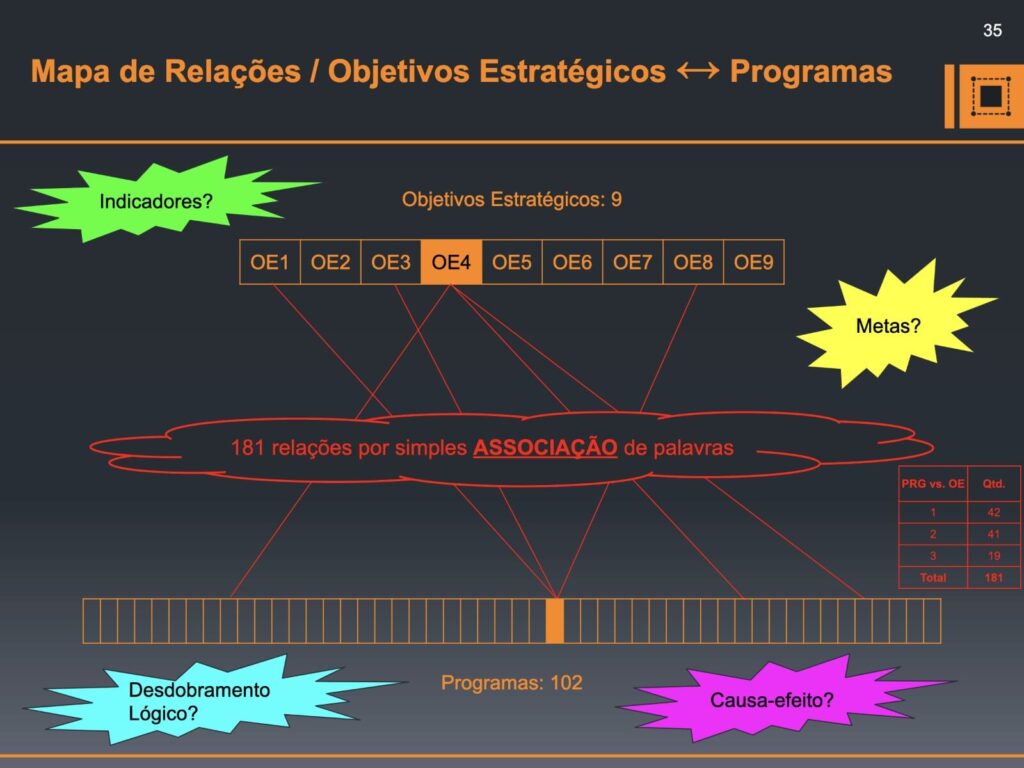 Uma vez que a ação governamental propriamente dita, concreta, acontece no nível das ações/produtos do PPA, e não nos programas do PPA, estes podem tornar-se instrumentos de planejamento estratégico do governo. Para isso, em vez de centenas de programas, a equipe técnica propõe a elaboração de: