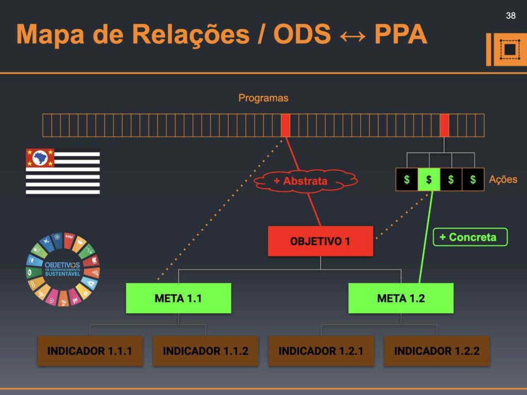 Desde 2018, o governo paulista procura construir um alinhamento entre os ODS e os programas do PPA. Contudo, esse alinhamento vem sendo realizado de maneira muito abstrata: os programas do PPA são conectados aos 17 temas do ODS por mera associação de palavras. Confira os relatórios de acompanhamento dos Objetivos de Desenvolvimento Sustentável (ODS) do estado de São Paulo publicados em 2019 e em 2022.