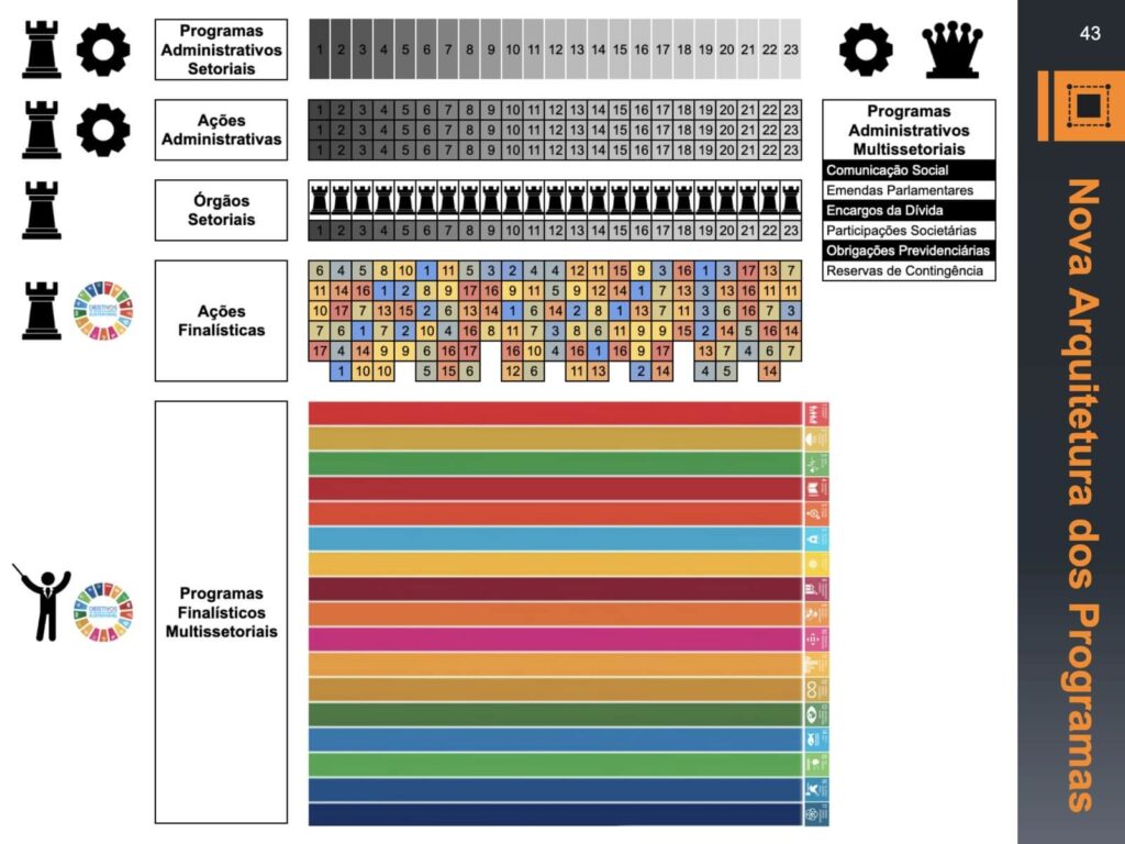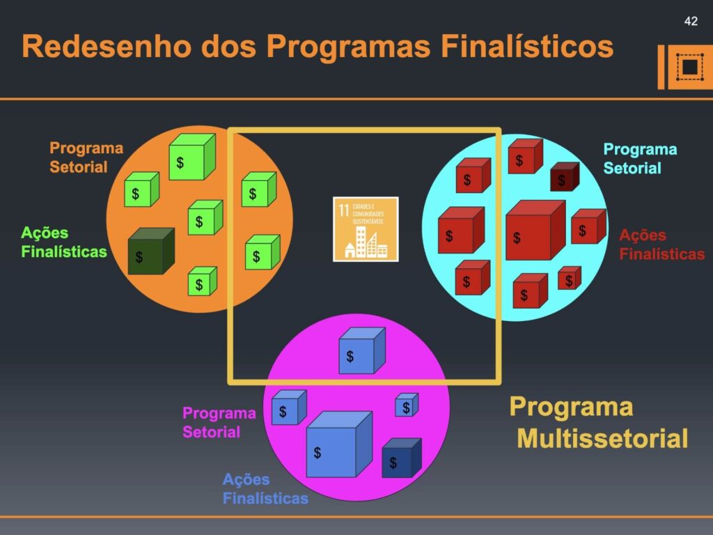 Novo: 17 Programas Multissetoriais (ações finalísticas) + 23 Programas Setoriais (ações administrativas).