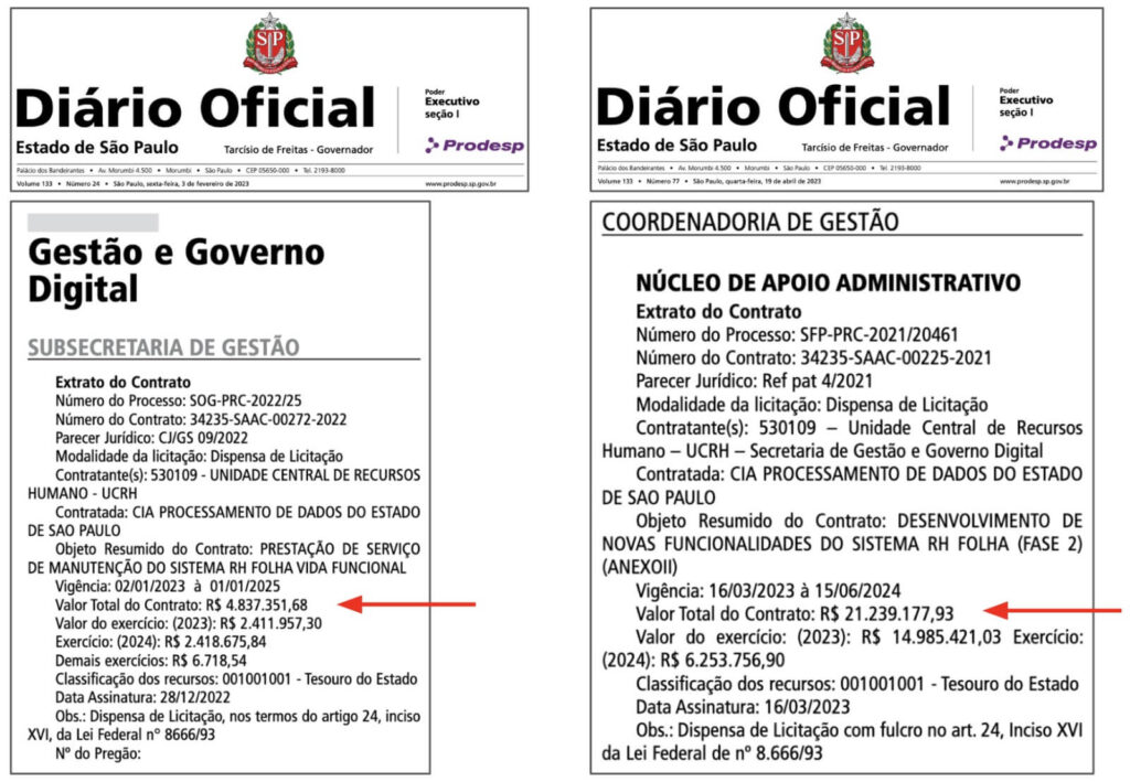 - Publicação no Diário Oficial do Estado – Desenvolvimento RH Folha sem licitação de R$ 21,2M.