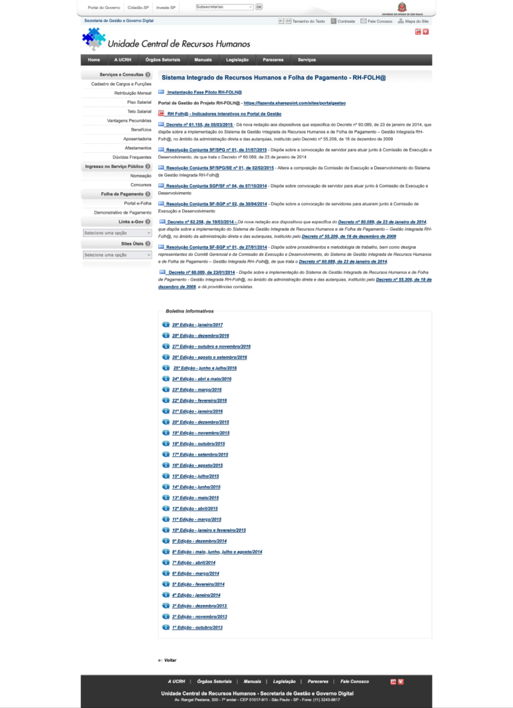 Um caso emblemático de desperdício de recursos públicos na área de recursos humanos é o projeto RH Folha (ou RH-Folha, ou RH-Folh@, ou RHFolh@). No próprio site da Unidade Central de Recursos Humanos (UCRH), em 30/05/2023, o status de implantação do RHFolh@ mais atualizado é de 2018. O projeto, aparentemente, está abandonado: