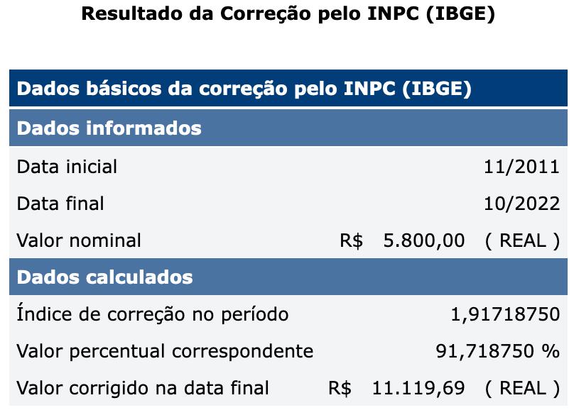 A escala de vencimentos que propomos corresponde a uma atualização de 51,7% em relação à remuneração da classe inicial na LC 1.034/2008 de novembro de 2011, o equivalente a R$ 8.797. Por sua vez, a inflação acumulada entre novembro de 2011 e outubro de 2022 é de 90,2% pelo IPC-A/IBGE, de 91,7% pelo INPC/IBGE e de 146,5% pelo IGP-M/FGV.